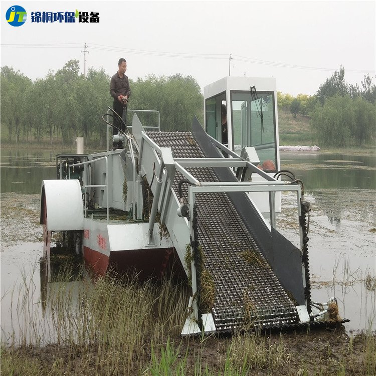 錦桐環保機械提供的割草船可以達到三米的卸料高度。