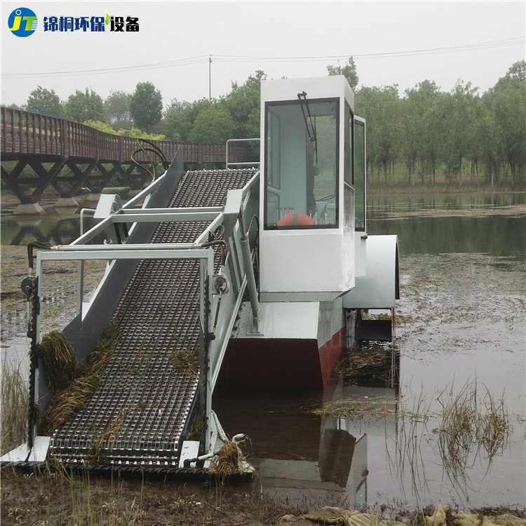 總結:割草船是一種集割草、聚攏、打撈、濾水、輸送、卸載等于一體的現代化水草、水葫蘆收割設備。錦桐機械割草船的所有操作程序采用全液壓控制,簡單、方便、靈活,是城市水面景區不可或缺的保潔設備,也可作為垃圾打撈船、湖面保潔船均收到良好的效果。