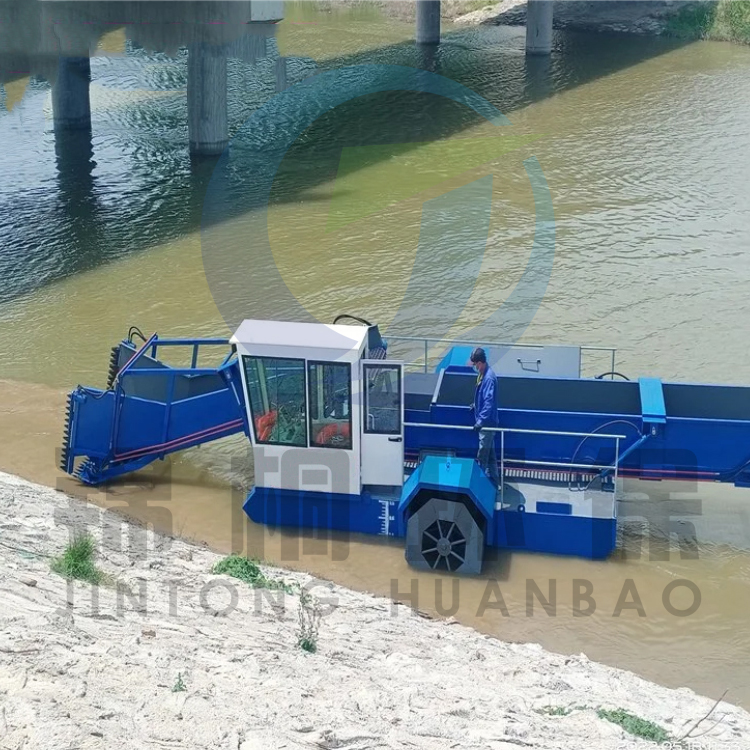 3. 割草船是否前進依據水草的多少而定,前進后退靈活,如果遇到特殊情況,例如,沙層塌陷設備工作吃力或者拉不動,要將牽引繩松開,割草船后退,直到行進到挖的動為止,如遇大石頭,船體會有巨大振動,就應該收起大臂,避開障礙物再前進。